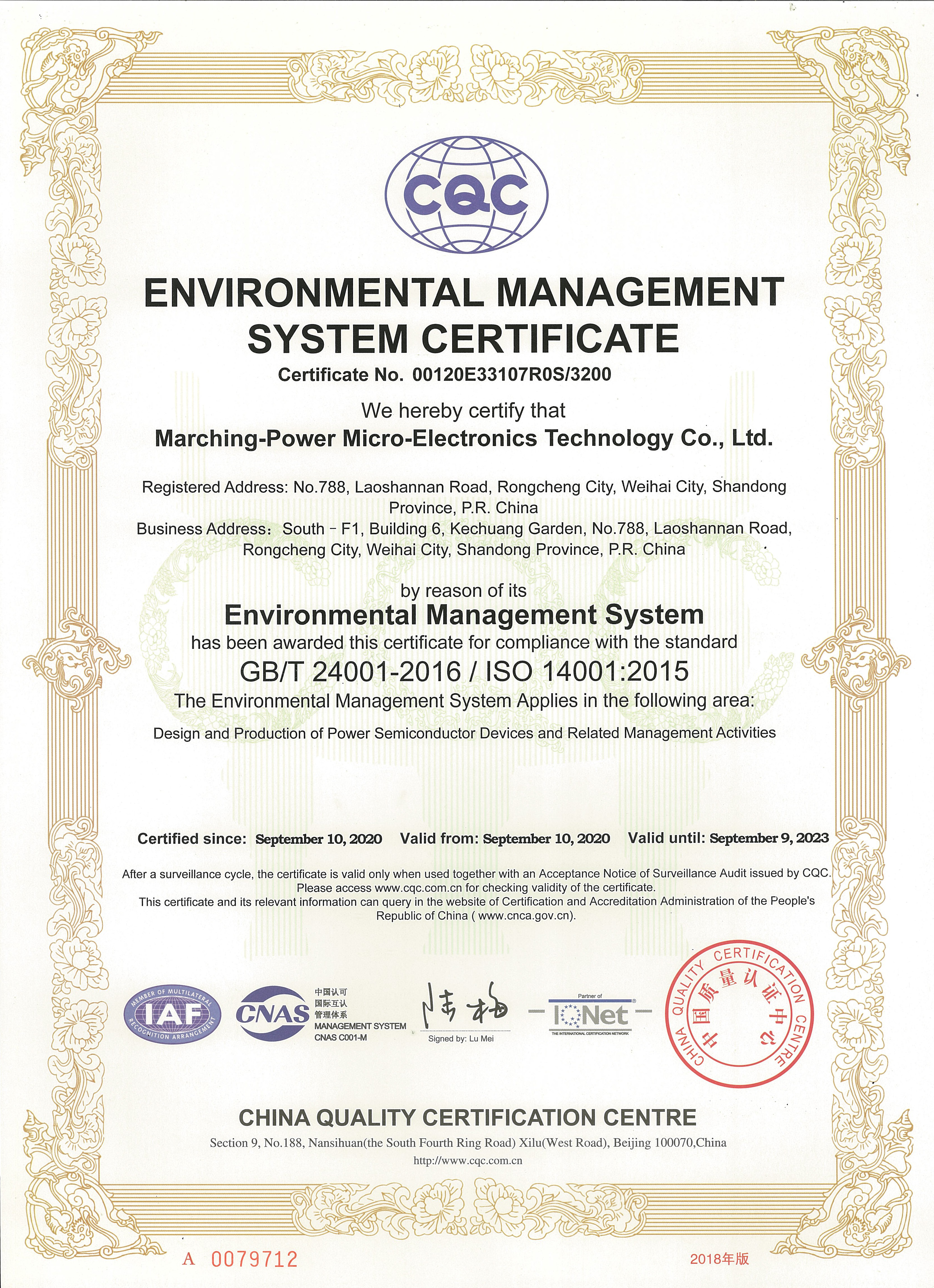Marching Power is headquartered in Nanjing, and its manufacturing is located in Rongcheng, Shandong Province. Marching Power has established sales offices in Shenzhen, Wuhan, Xi'an and other places. The company has more than 300 employees, of which R&D engineers account over 40%. Marching Power focuses on R&D investment and accumulation of technology, the technical team consists of technical experts from the Chinese Academy of Sciences and other outstanding overseas technical talents. The company founding team members have been working for more than 20 years in power semiconductors and have gained many achievements in the field. The company has applied for 162 intellectual property rights, and has obtained 1 authorized international patent, 26 authorized national invention patents, 48 utility model patents, 7 appearance patents, 66 computer software copyrights, and 14 integrated circuit layout drawings.